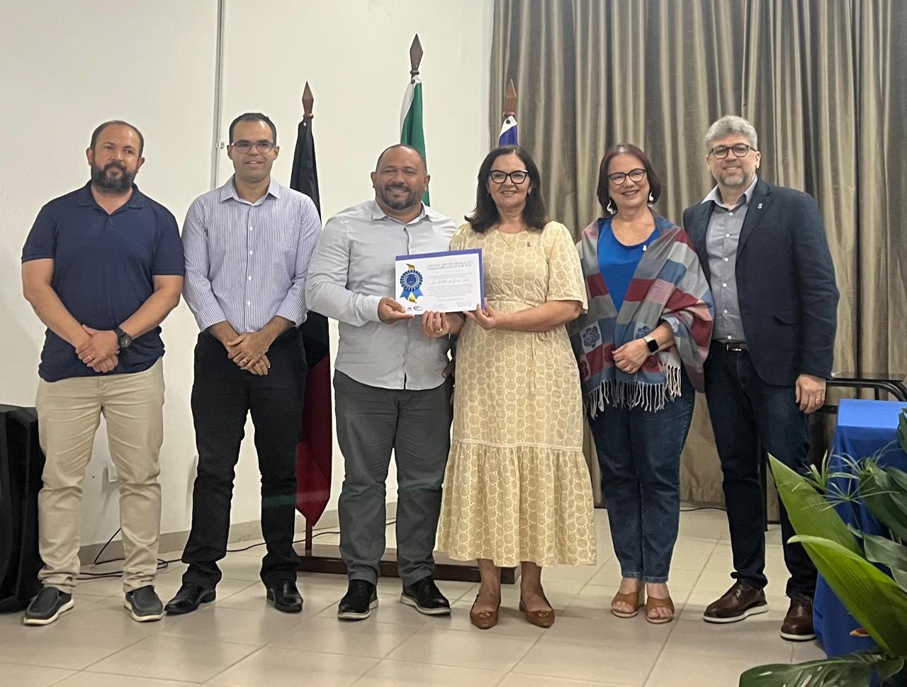 Figure: From left to right – Prof. Dr. Igor Fernandes Gomes (Co-Advisor), Prof. Dr. Gustavo Charles Peixoto de Oliveira (Advisor), Dr. José Wilker de Lima Silva (Advisee), Profa. Dra. Terezinha Domiciano Dantas Martins (Rector of the Federal University of Paraíba – UFPB), Profa. Dra. Mônica Nóbrega (Vice-Rector of UFPB), and Prof. Dr. Evandro Leite de Souza (Dean for Graduate Studies of UFPB).